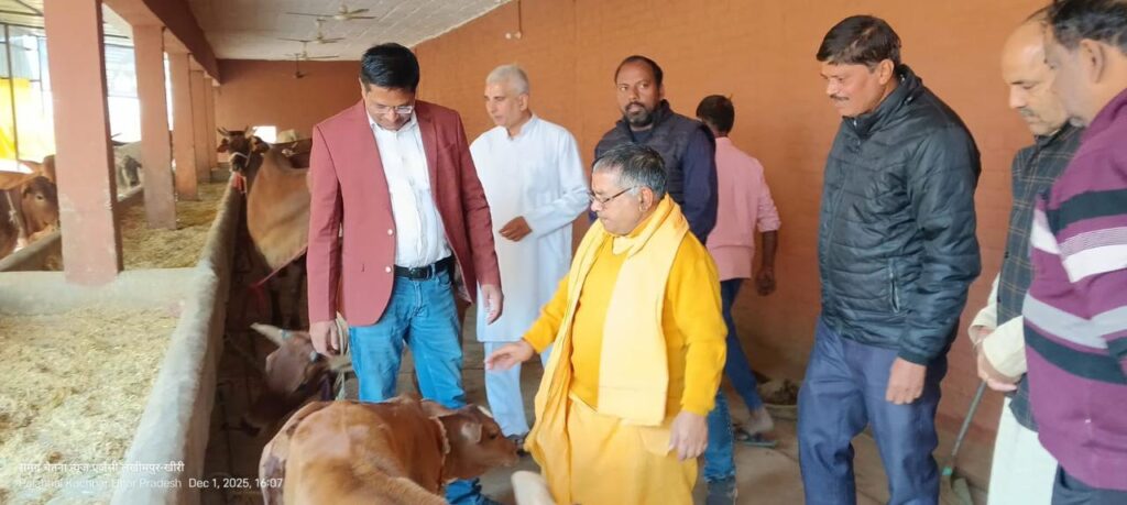 लखीमपुर-खीरी – उत्तर प्रदेश गौ सेवा आयोग के अध्यक्ष श्याम बिहारी गुप्ता मोहम्मदी ब्लॉक के स्मार्ट गांव दीनदयाल पुरम पहुंचे, जहाँ उन्होंने वृक्षारोपण कर पर्यावरण संरक्षण व ग्रामीण विकास को जोड़ने की आवश्यकता पर जोर दिया। इसके बाद वे पाल अभय कचनार स्थित स्वयंसेवी गौशाला—माताजी गौ धाम पहुंचे और गौ पूजन किया, गौवंश को फल खिलाए तथा नंदी की सेवा कर सभी को गोसेवा का संदेश दिया।