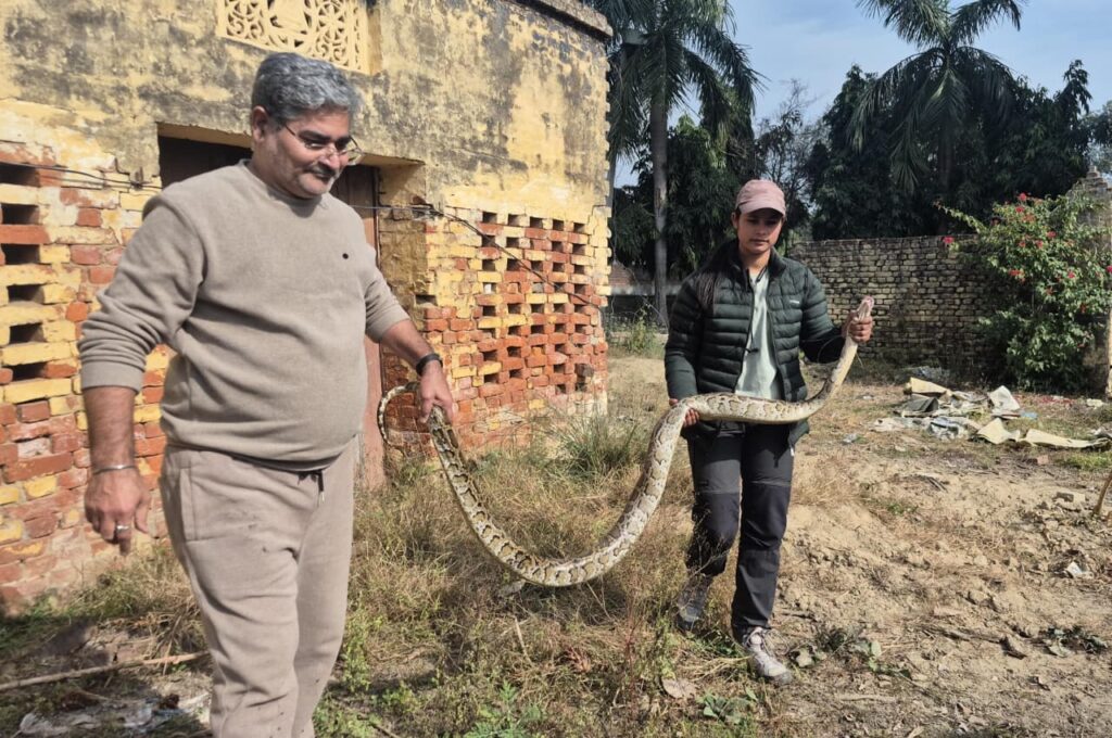 सूचना पर वन विभाग की रेस्क्यू टीम तत्काल मौके पर पहुंची। दुधवा टाइगर कंजर्वेशन में कार्यरत नज़रून निशा ने अदम्य साहस और सूझबूझ का परिचय देते हुए जोखिम उठाकर अजगर को काबू में लिया। रेस्क्यू के दौरान मौके पर मौजूद ग्रामीणों की सांसें थमी रहीं, लेकिन अनुभवी टीम ने पूरी सावधानी के साथ अभियान को सफल बनाया।